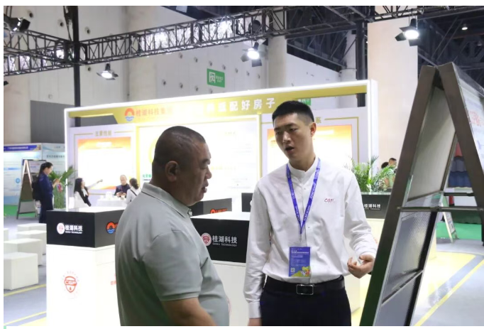 展会首日,桂湖展位始终人流涌动。业务团队通过实物展示、样板演示、案例对比等多种形式,为每一位到访者进行了专业、细致的讲解。此外,除了静态的产品展示,每日举办两场主题演讲成为专业观众瞩目高地。演讲内容紧密围绕建筑防水、楼层隔音、修缮维护、城市更新等议题,由技术顾问担纲主讲。
